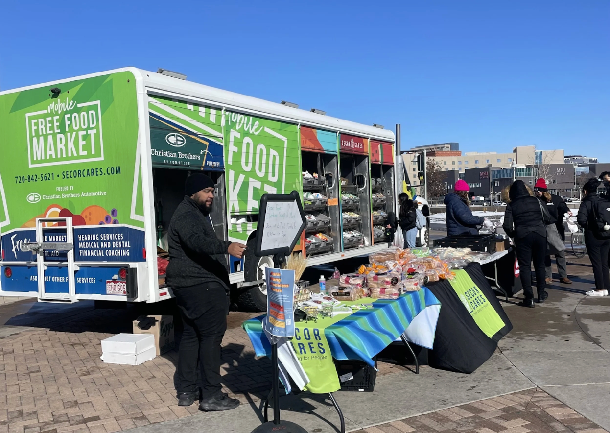 SECOR Cares provides free food markets, mobile meal programs, and connects families to mental health, legal, and senior services.